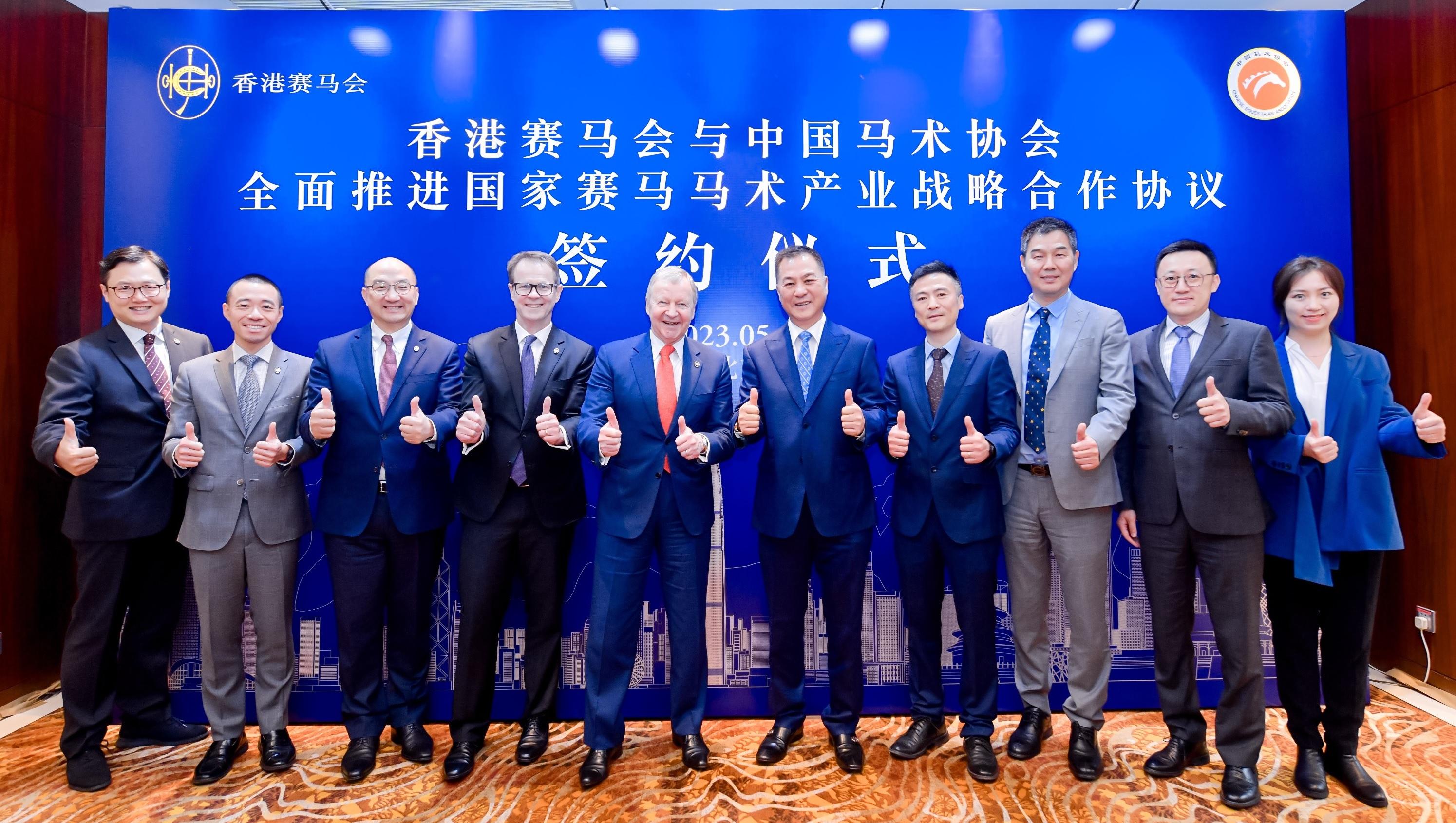 香港賽馬會宣布,今(5日)與中國馬術協會(中馬協)簽署合作框架補充協議,進一步擴大合作範圍及延長合作時間,共同促進和支持國家賽馬及馬產業發展。