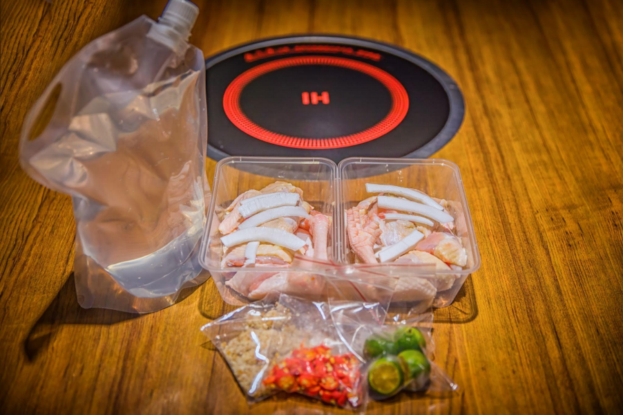 肉質緊實Q彈性、皮脆肉嫩 鍋底配搭的雞肉是用海南文昌雞,這些雞在飼養過程中會在飼料中加入椰子,經過150天的自由放養和20天的籠養,肉質緊實有彈性,讓雞肉皮脆肉嫩。無論是雞腿肉還是雞胸肉,都能在短短5分鐘的火鍋烹煮中保持鮮嫩口感,每一口都能品嚐到椰香滲入的美味。配料「巨大化」!