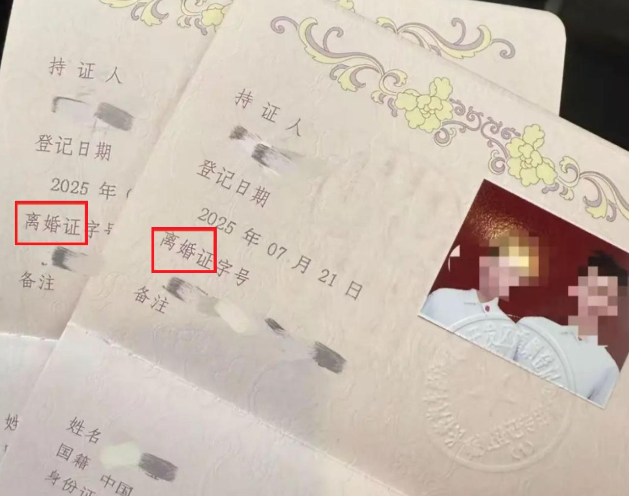 據《紅星新聞》報道,來自長春的網民在社交平台發布影片稱,周一上午和丈夫前往長春汽車經濟技術開發區民政局婚姻登記處辦理結婚手續。當他們拿到證件時,赫然發現紅色封面竟印着「離婚證」三個大字,內頁本應標示「結婚證字號」的位置也變成了「離婚證字號」,不過字號開頭字母仍是代表結婚的「J」,而非離婚的「L」。