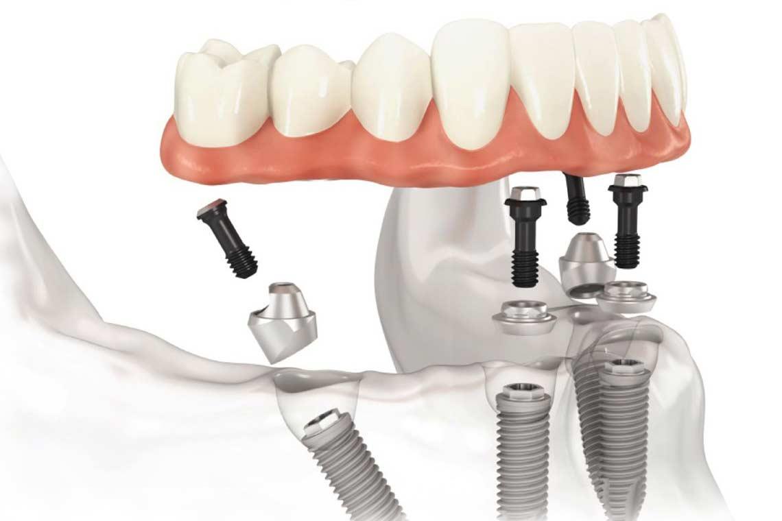 - 如果其中一支植體失效,可能需要整排牙橋重做