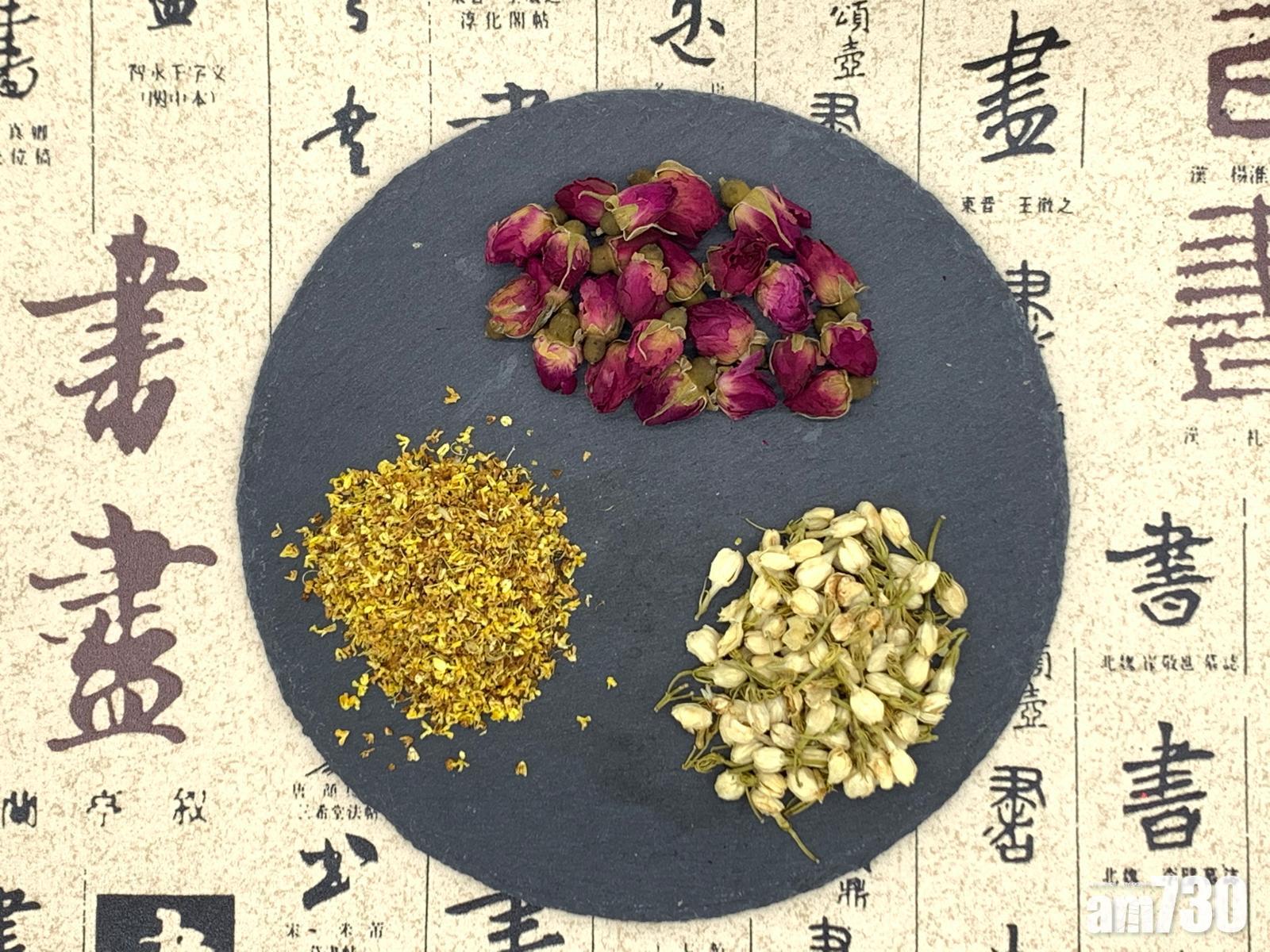 材料:玫瑰花6朵,茉莉花8至10朵,桂花1 湯匙