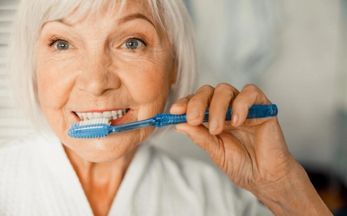 2. 保持良好的口腔衛生——使用含氟牙膏防止蛀牙。用軟毛牙刷每天刷牙至少兩次,每次兩分鐘,並且在牙齒鄰間使用牙線。如果佩戴假牙,每天刷洗假牙去除食物殘渣和菌斑。在戴假牙之前,用軟毛牙刷輕刷牙齦、舌頭和口腔頂部,以促進組織血液循環並去除牙菌斑。