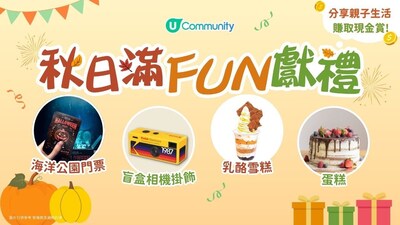 香港 2025年9月29日 /美通社/ -- 秋風起,時候安排中秋節賞月或入秋活動,約親友一起去玩放鬆下!U Community 社群早已安排好一系列送禮及試用活動,海洋公園門票爆紅盲盒相機掛飾健康乳酪雪糕蛋糕試食,招募各路KOL參加!無論親子 KOL丶Foodie丶旅行控或任何創作者!全部只需完成簡單任務就有機會免費享受,用豐富禮物記錄生活!
