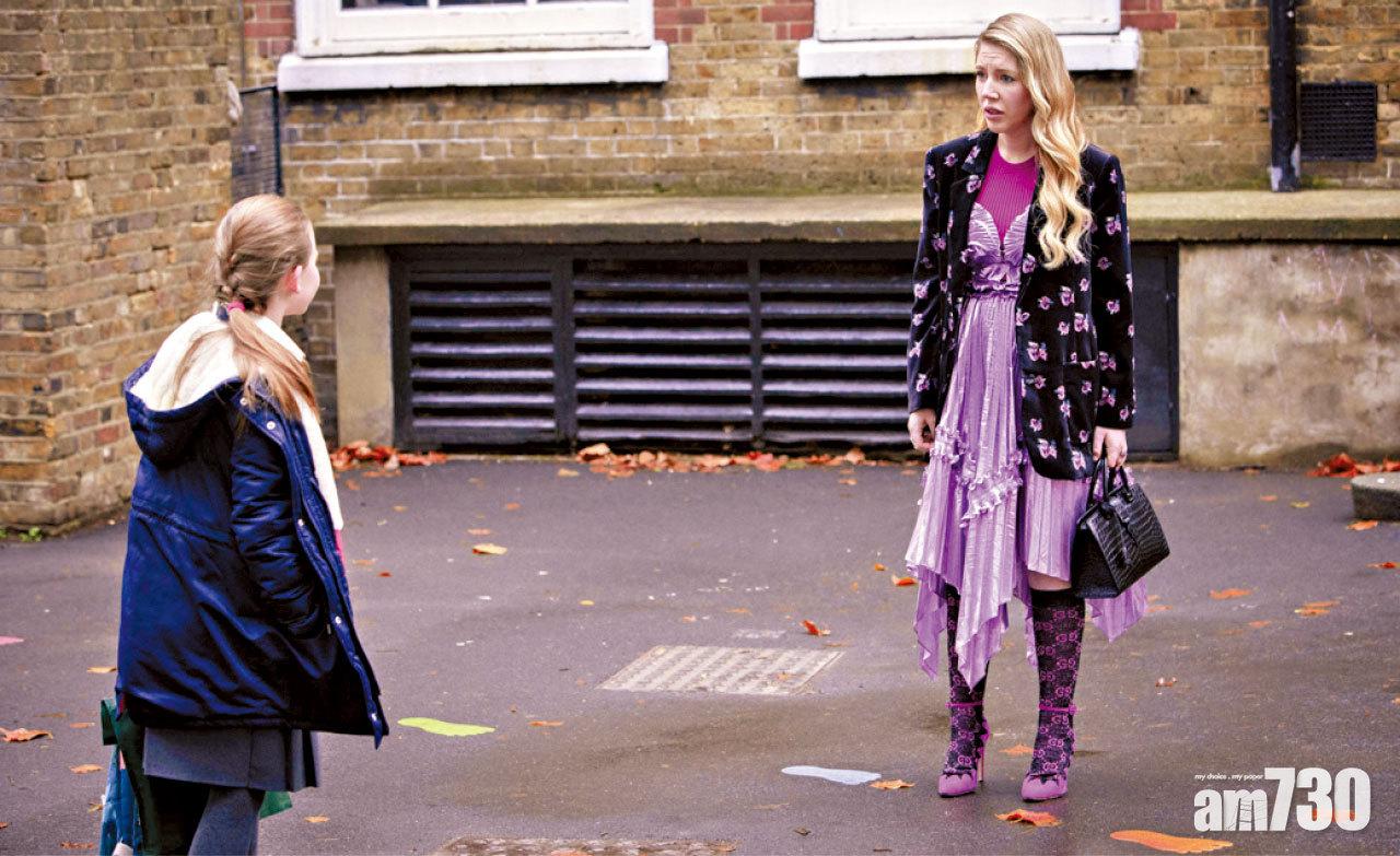 老實說她的bitchy也不見得特別精彩或尖酸,而且有時來得很突兀及刻意,不過正如西太后Vivienne Westwood話齋,「常穿叫人印象深刻的衣服,你的人生會更精彩。(You have a more interesting life if you wear impressive clothes.)」的確,劇集其實沒有很強的故事性,一開始女主角帶著女兒返學的情節,如果不是她身上那件「World’s smallest pussy」衛衣配Prada綴羽毛睡衣套裝,應該不會吸住我的眼球,套衫擺明車馬下戰書:「老娘可不是一般阿媽,而是有型有款有品味的單親貴族。」還要嘲弄男性凝視一下,既bitchy又時尚,打破一般人覺得單親媽媽生活困頓疏於裝身的「丫烏婆」形象。