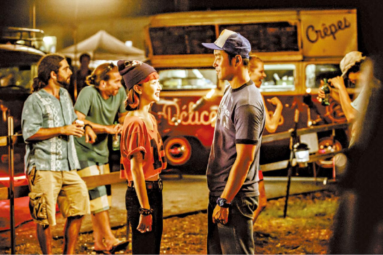 這種莫名奇妙的說法,你猜疑,是因為他說得似層層,而這個說法,似乎又沒有必要欺騙人?欺騙人又有何好處?難道會得到更多指甲刀?於是,這個問題一直在男主角Sean內心縈繞。該片一直以虛幻感包裝,在夏威夷這片逍遙國度內,畫面呈現的所有顏色都是鮮明奪目的,那是熱戀的氣息;那種氛圍,一切都是新的衝擊,有著最夢幻的浪漫感,就像《星聲夢裡人》那種顏色,不過小擺設很多,看後有種目眩感,相信是對應片中男、女主角從頭到尾都虛幻不實在的愛,讓人懸浮半空的感覺。