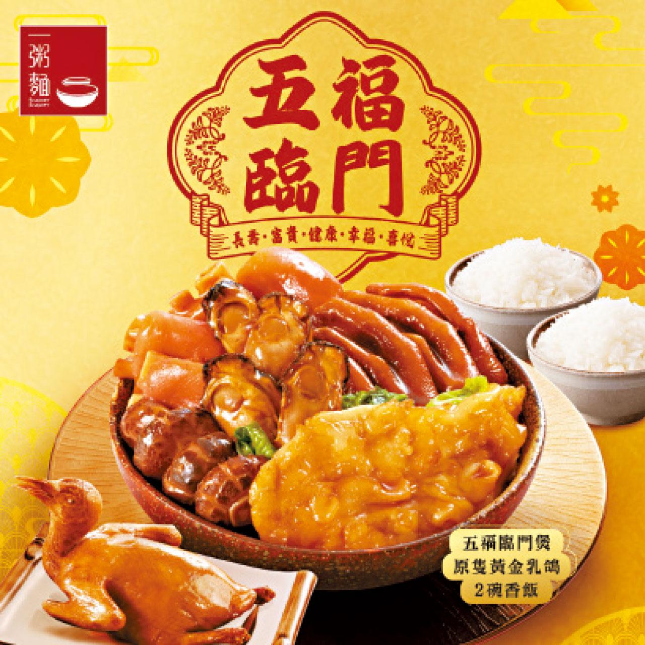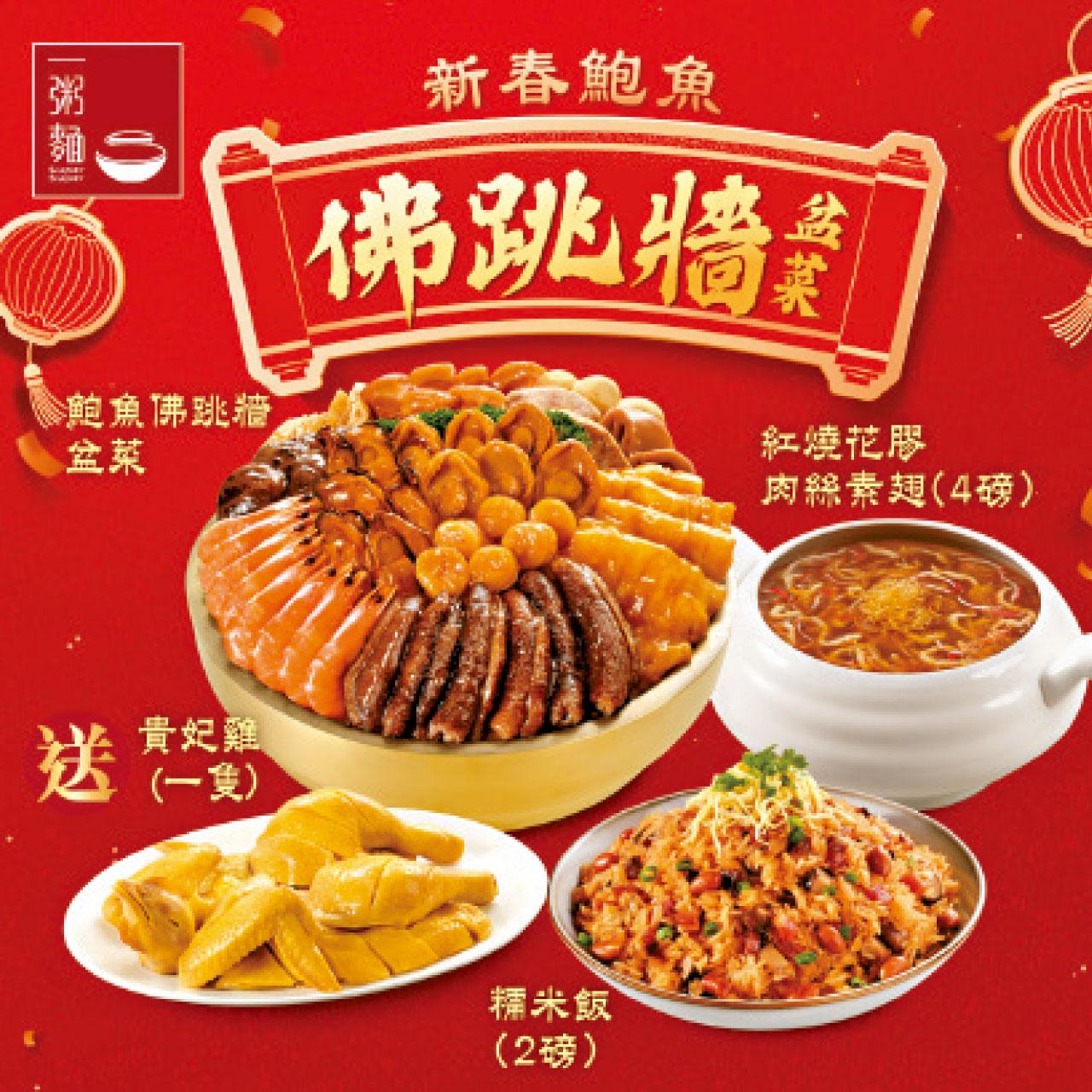 佛跳牆又稱福壽全,帶有吉祥如意,福壽雙全的好意頭。一粥麵「佛跳牆盆菜」有十頭鮑魚、瑤柱、海參、花膠等食材,更加送貴妃雞。即日起至2月6日期間訂購,可享低至七折早鳥優惠價,更有機會獲額外3重獎賞,包括:$188福袋優惠券及七師傅利是封。Ray見圖片已甚吸引,大家要訂盆菜,要留意優惠。