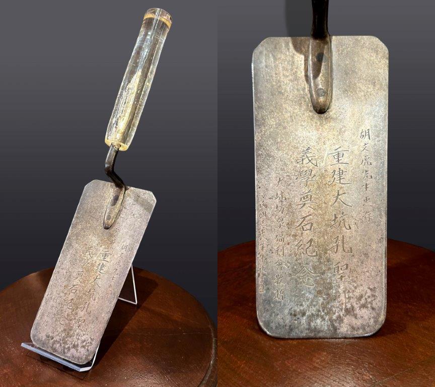 1949年8月大坑坊眾福利會為感謝時任名譽會長胡文虎慷慨捐助義學重建,特意送贈義學重建奠石典禮紀念鏟,此紀念鏟現於虎豹別墅展出。義學於1949年11月開幕,當時胡文虎未克出席啓鑰典禮,由兒子胡好代表出席。