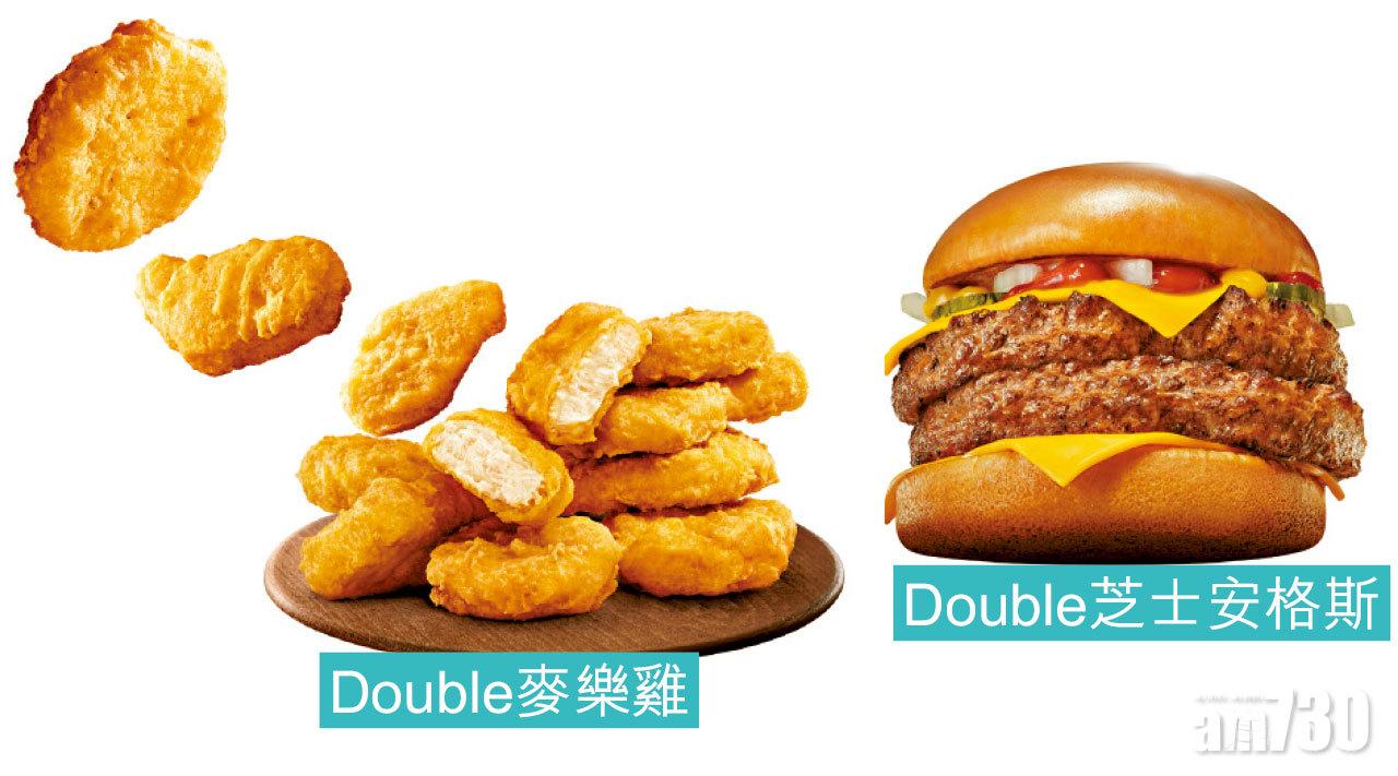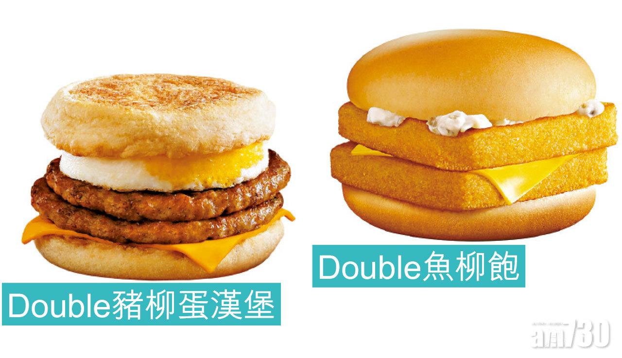 4款材料加倍升級的Double美食,包括Double魚柳飽及Double麥樂雞(共12件)超值套餐,均以打氣價35元發售,Double豬柳蛋漢堡超值套餐售38元,而Double芝士安格斯超值套餐則售45元。