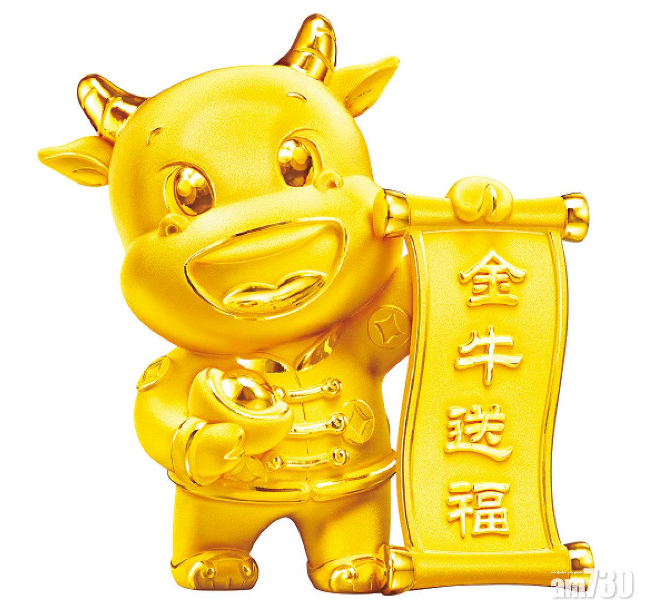 講返2021年「金牛送福」系列,多款別具心意的足金飾品中,包括各式擺件、吊墜、轉運珠、嬰兒鎖包、嬰兒手鐲、金條、金鈔及金章等,均屬手工精緻細膩、趣致生動。不同動態表情的金牛造型設計,當中包括送贈長輩必選:體格魁梧、昂首闊步的祥牛、亦有小朋友必愛的可愛活潑、Q版小金牛。