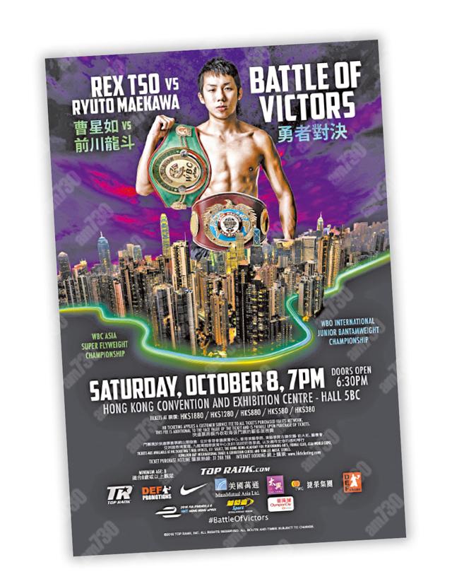 港產職業拳手「神奇小子」曹星如(Rex)又上擂台!佢將於10月8日於香港會展舉行的「Battle of Victors勇者對決」,挑戰日本拳手前川龍斗,爭取 20 連勝。為表支持,太興今日起將於Facebook專頁以遊戲送出該賽事門票,玩法包括Like太興飲食集團Facebook專頁,分享有關post並tag朋友,留言回答最想同曹星如講嘅打氣說話等遊戲步驟,再到另一文檔專頁填寫個人資料,活動至9月15日午夜截止。最後將由曹星如親自選出最有心思的30位得獎者,每位可獲2張價值380元門票兩張,與朋友一同入場支持曹星如,為他加油打氣,見證他爭奪「初雛量級國際拳王」寶座,創造20連勝的不敗紀錄!