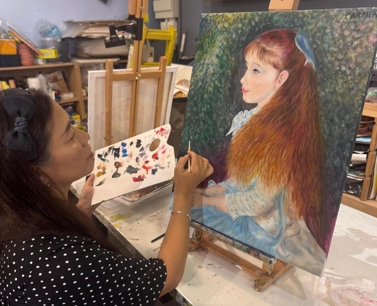 她的眼睛、睫毛、鼻孔、嘴唇、臉龐,我不知改了多少次。一邊改一邊咀咒:「大師啊,你真是癫的!」為求迫真自然,雷諾亞繪畫出皮膚之下微絲血管的青紫色,以烘托紅潤的面龐,冷暖色自然交替過渡,流暢互補,突顯了女孩通透富彈性的膚色、明亮立體的輪廓。