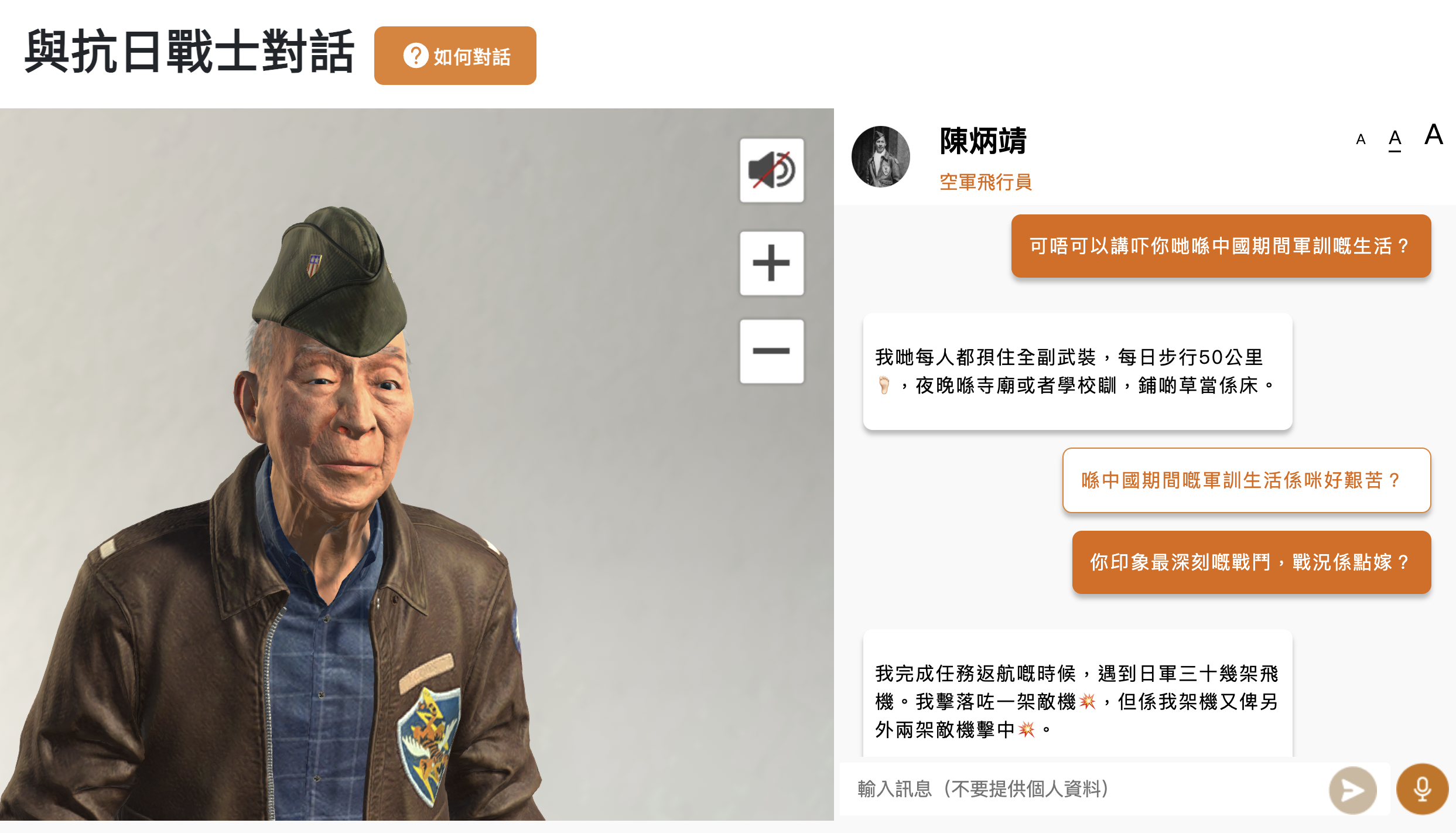 筆者最近在工作中接觸到抗日戰爭的口述歷史,發現香港一間機構透過AI技術,模擬讀者與抗戰老兵對話,本着好奇心就登入網站試玩一下。