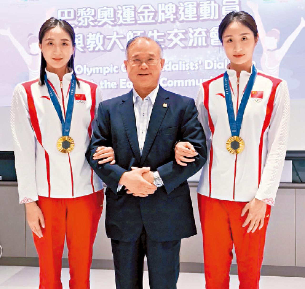 香港教育大學(教大)精英運動員學生、巴黎奧運花樣游泳(韻律泳)兩金得主王柳懿和王芊懿同學於上周五返校領取學生證,正式加入教大大家庭。她們隨後參加與教大師生的交流會,分享在運動道路上的追夢過程、個人成長經歷、未來人生規劃,與奧運摘金後的心路歷程等。