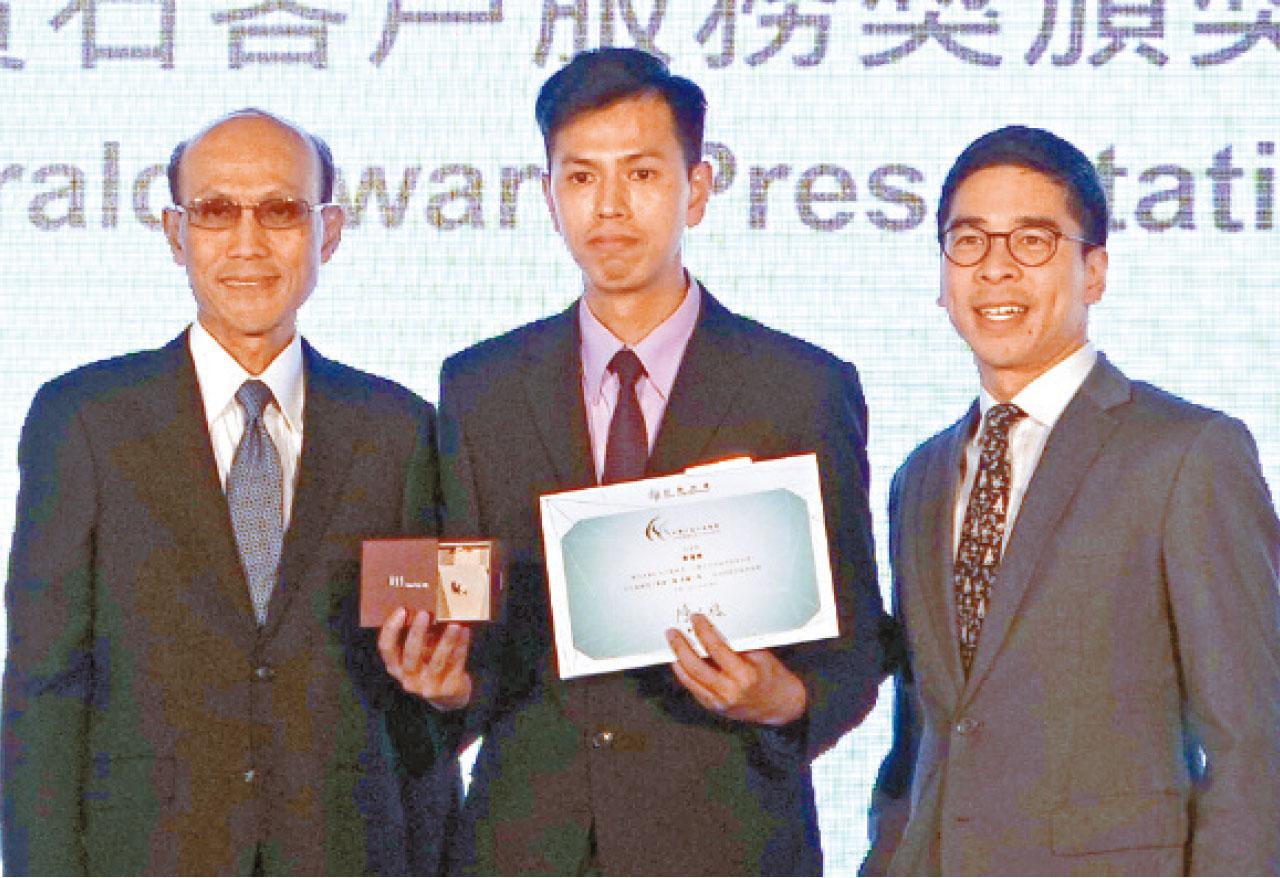吳向上級匯報後,決定報警求助。消防員及警察到場,破門入屋,發現一名80歲的婆婆暈倒地上,立即送婆婆到醫院救治。吳擔心破門後單位變中門大開,故主動聯絡單位業主,提醒要維修鐵閘同大門。婆婆出院後,佢亦有慰問婆婆身體情況。好人好事,值得嘉許。圖為恒隆地產主席陳啟宗大仔執行董事陳文博(Adriel,右)及另一執行董事陳家岳(Norman)與得獎者吳淦輝合攝。
