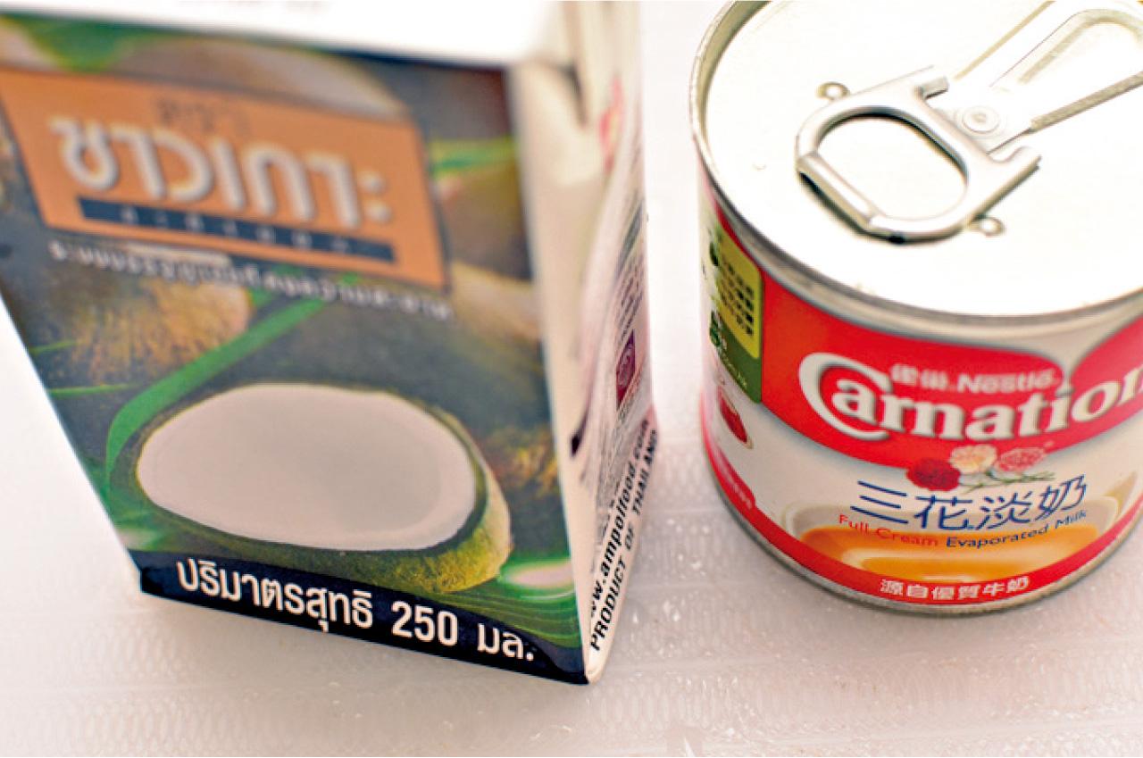 6.下椰漿、淡奶和唐芹,煮沸即成。