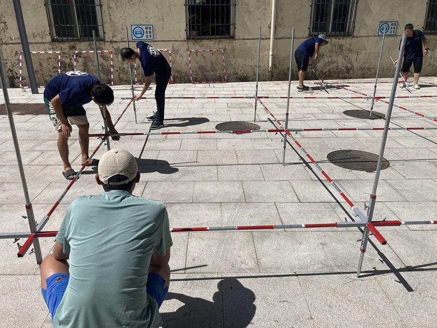 學員於陸上練習如何在水中佈設探方。