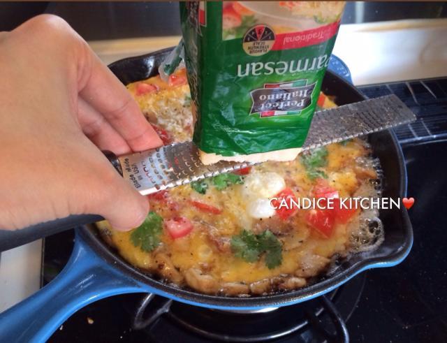 5) 最後刨巴馬臣芝士在蛋餅上,完成。