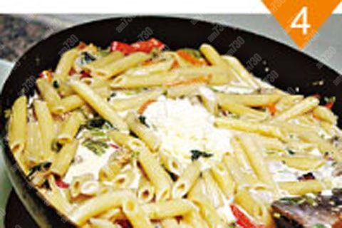 汁料︰淡忌廉200毫升、水100毫升、Mozzarella芝士80克、黑椒碎適量、鹽適量、雞粉1茶匙