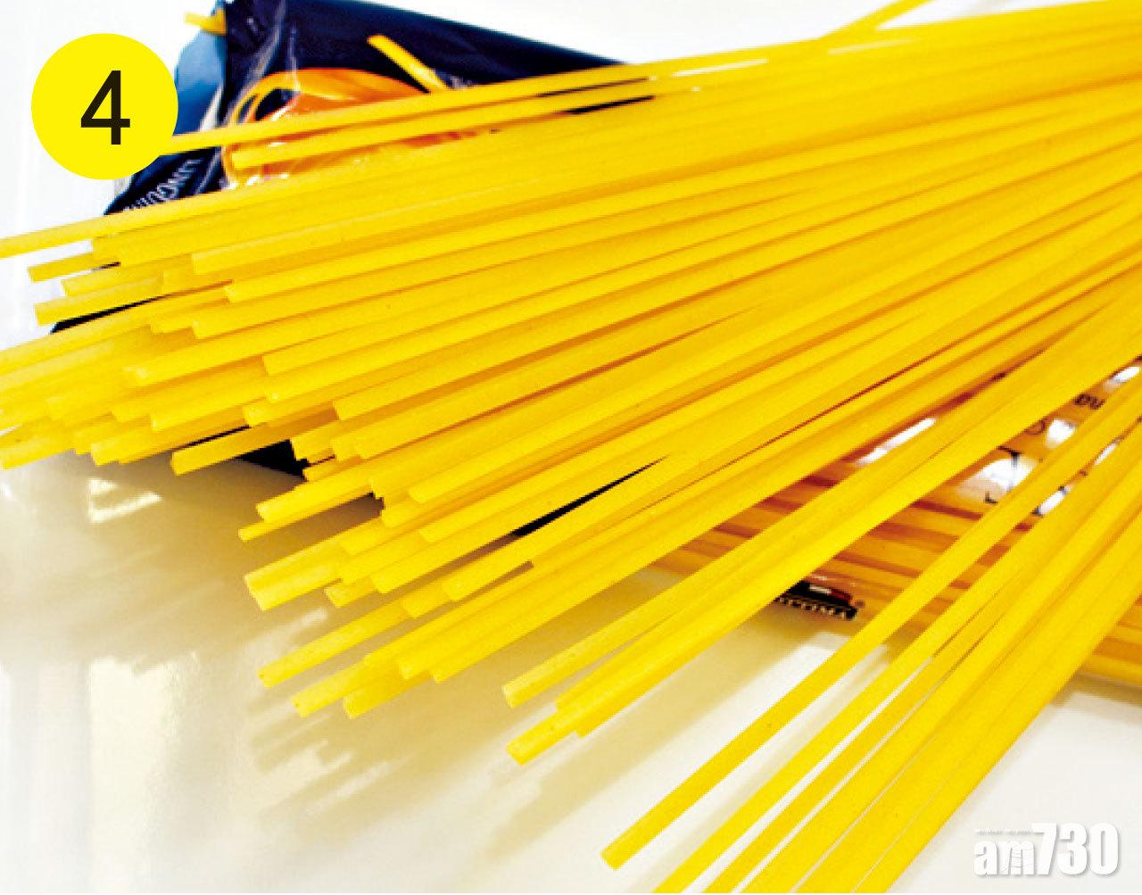 4. 車厘茄切半,意大利芫荽切碎,參照意粉的包裝指示煮熟意粉,撈起。