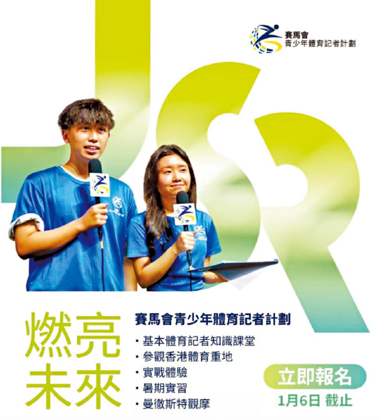 JSR來到第12屆,首100位成功報名的學員更可得到「賽馬會菁英盃」指定賽事門票兩張。至於計劃的活動非常多元化,包括基本體育記者知識課堂,與資深傳媒人一同上陣,邊做邊教;實戰報道本地體育盛事,如七欖及賽馬會菁英盃網上直播;暑期更有機會到傳媒機構做實習;表現優異的學員還可到曼聯卡靈頓、奧脫福等聖地觀摩及報道。計劃即日起至2025年1月6日接受報名,有興趣的年輕人切勿錯過此燃亮未來的機會。詳情參閱:賽馬會青少年體育記者計劃 - 與你並肩