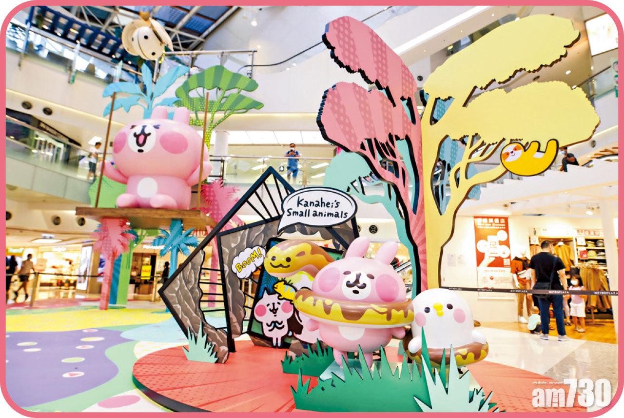 遊走完室外的卡通主題農莊,到室內L3中庭,是另一打卡熱點Jungle Party森之派對,以棕櫚樹群配合首次以漫畫風格呈現的Kanahei’s Small animals,5 大打卡位有排影。另外,新都會廣場特備兩款限量精品, The Point會員憑指定消費或會員積分,即可換領P助與粉紅兔兔「可摺式旅行袋」或「陶瓷碗」。