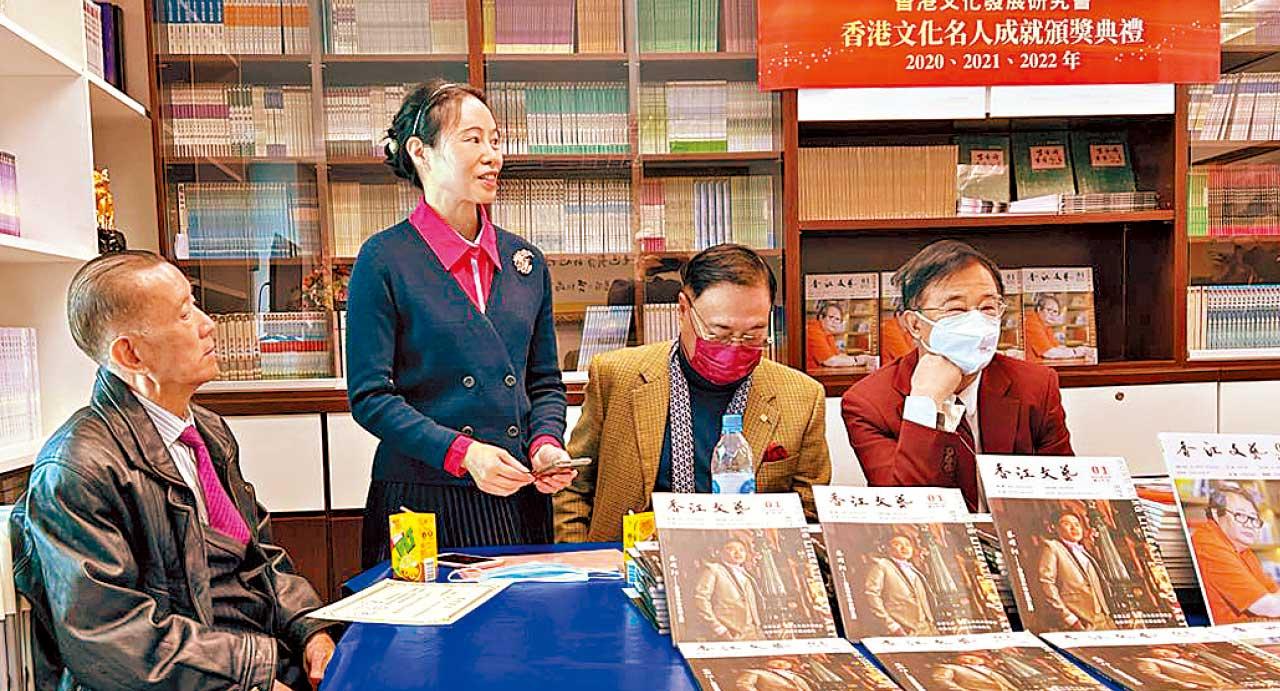 最近出席香港文化發展研究會主辦的2020至2022年度香港文化名人成就頒獎典禮,頒獎給12名對香港文化有貢獻人士。頒獎嘉賓是退休多年的前新華社亞太總分社社長俱孟軍,專程從深圳來香港主持頒獎禮。大部分獲獎者都是早年從中國內地來港的名書畫家及詩人。本身是作家及詩人的文發會會長陳慧雯表示,傳播中國傳統文化很重要,可以深入到中國人的骨髓,無論中國人走到哪裏,都因此有特殊的辨識度。琴棋書畫是中國傳統文化,大會今年首次頒發「傑出音樂教育家獎」給香港土生土長的音樂教育家鄧佩芬(Michelle Tang)。