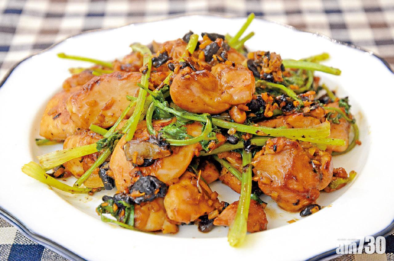 6. 再放豆豉蓉、薑米和蒜片於鑊中炒香,將雞件回鑊,加入砂糖略炒,再加入芫荽段炒勻,上碟即成。