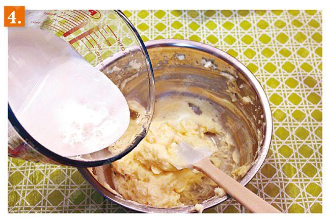 4.加入淡忌廉再用中低速打發至全部混合。