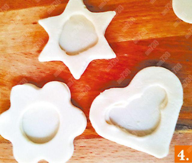 2. 用餅模在酥皮上裁出不同形狀各三塊。