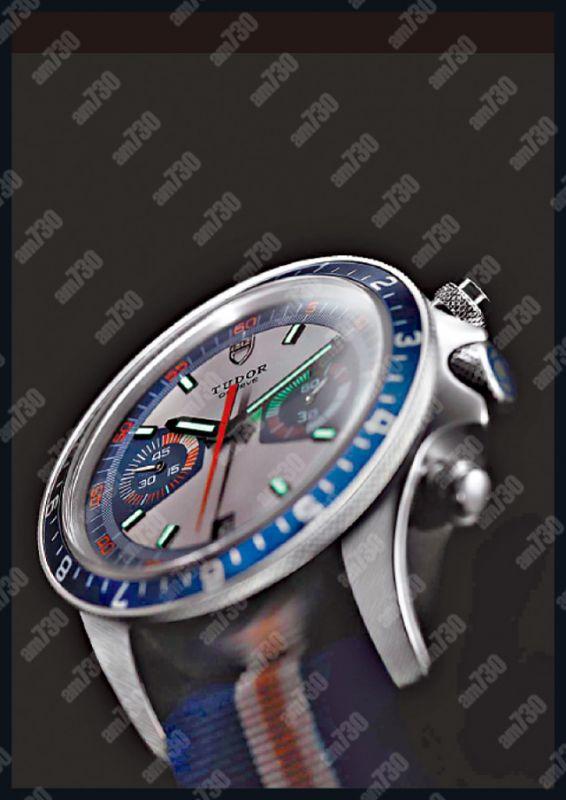 2010年的復刻版「花面貓」Heritage蒙地卡羅計時碼錶,讓錶迷眼前一亮。帝舵做到了把經典設計的精髓結合了現代美學的觀感,令這款復刻版馬上牽起了熱潮,在到貨初期還造到了多次超公價成交的紀錄。今年帝舵把「花面貓」最精彩的橙加藍色錶盤款復刻,再佩一條同色系的織帶,充滿浪漫的歐陸風情,比2010年款的橙加灰色版,個人認為美上百倍!唯一可以批評的,是六時位的日曆窗沒有加上原汁原味的放大鏡,希望帝舵日後可以考慮。隨錶還送一條精鋼錶帶,對手汗大的用家非常貼心。