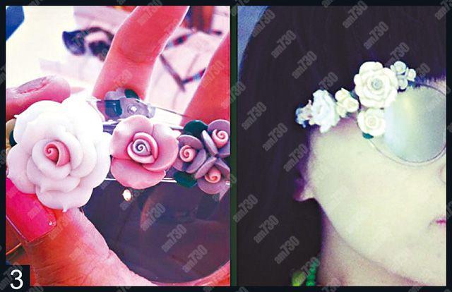 充滿復古情懷的Miu Miu,今年大玩懷舊貓眼。平光鏡有紫色、瑪瑙色及黑色(圖一左);而太陽眼鏡則大膽地用上金色設計,上樑的金色部分加粗了,相反,眼鏡的下半部(連同鏡片)竟然削平了(圖一右),設計獨特,又夠玩味,型女必備!此外,其母公司Prada設計出立體花太陽鏡,鏡框備有瑪瑙色及黑色。一朵朵黑白色的花朵,一字型排列於太陽鏡上樑(圖二左)試戴後即時型格爆燈(圖二右)。