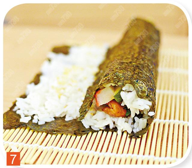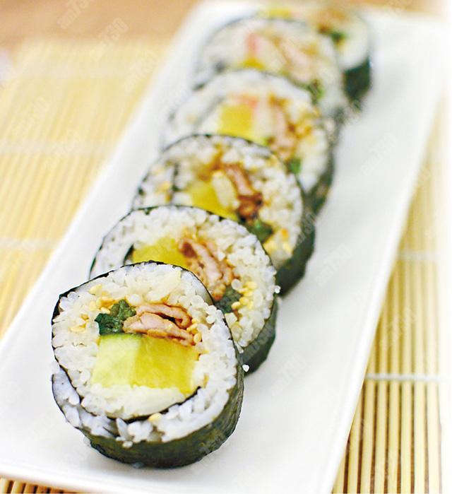 我會說韓式壽司是一種蠻均衡的壽司,因為一客壽司裡,總會包含五穀、肉類及蔬菜。韓國人也很喜歡將自己喜愛的食物都加進去,例如有菠菜、酸蘿蔔、紅蘿蔔和青瓜,這都能令壽司添加更多纖維;肉類方面,蟹柳是最方便的選擇,但新鮮肉類如雞肉、豬肉及牛肉營養價值便更豐富了。