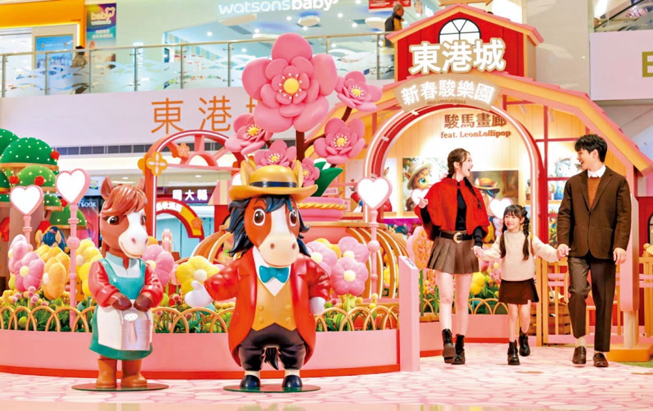 丙午馬年將至,將軍澳東港城聯乘本地人氣藝術家 LeonLollipop,由現在至3月3日呈獻「東港城新春駿樂園」,以藝術美學結合寓教於樂,打造逾3,000 呎的互動莊園。