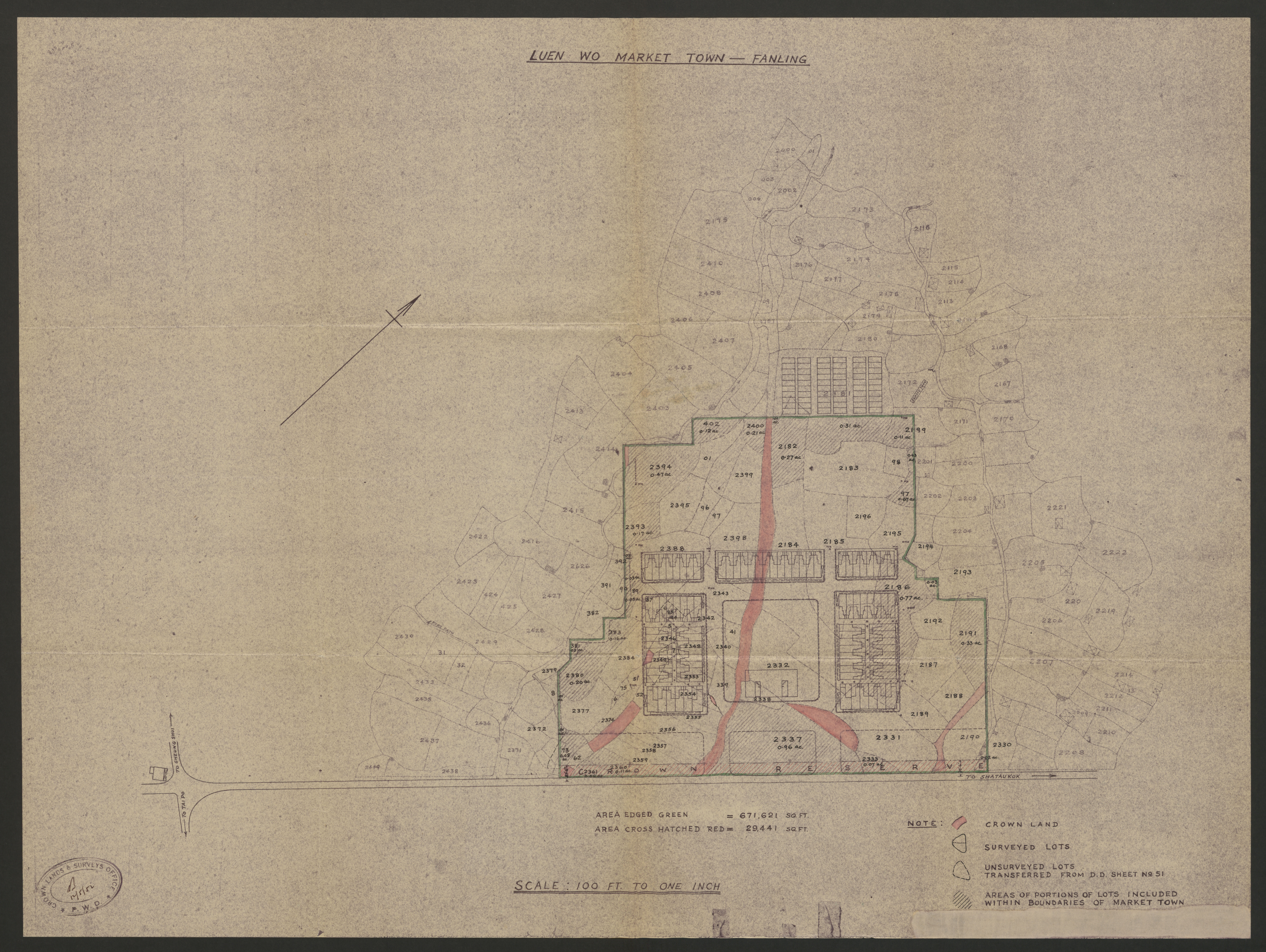 從聯和墟的發展規劃圖則可見其布局工整。(圖片來源:政府檔案處歷史檔案館,HKRS 896-1-57)