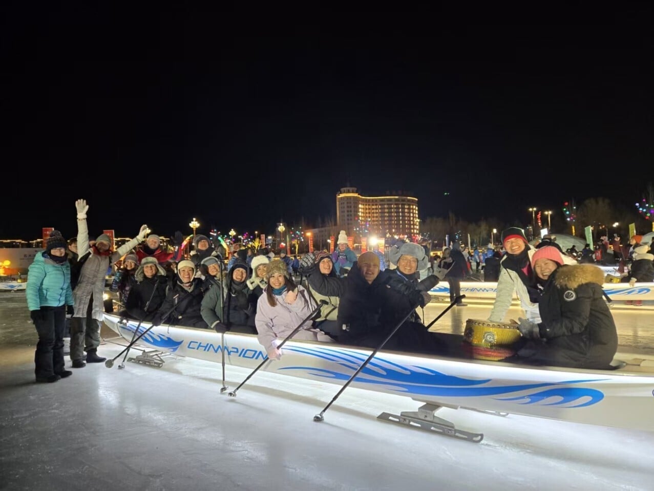 冰上龍舟與港人熟悉的傳統龍舟大相逕庭,比賽在結冰湖面上進行,船槳改換成「冰釬」,而船底則加裝「冰刀」讓龍舟得以在冰面滑行。這項運動講求短距離爆發力與團隊同步,集競技、娛樂與文化特色於一體。縱然戶外氣溫低至零下十多二十度,但緊張刺激的賽事讓人熱血沸騰。大會更在冰湖上舉行夜間龍舟與冰上篝火晚會;各健兒圍著熊熊篝火載歌載舞,嚴寒之中熱情洋溢,充分體現「友誼第一」的體育精神。