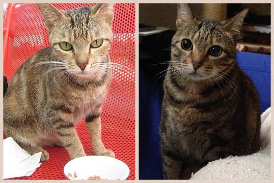 也是筆者領養的愛貓「花花」,當年流浪時歪咀又瘦,現在已是珠圓玉潤。