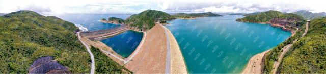 萬宜水庫東壩鳥瞰圖。