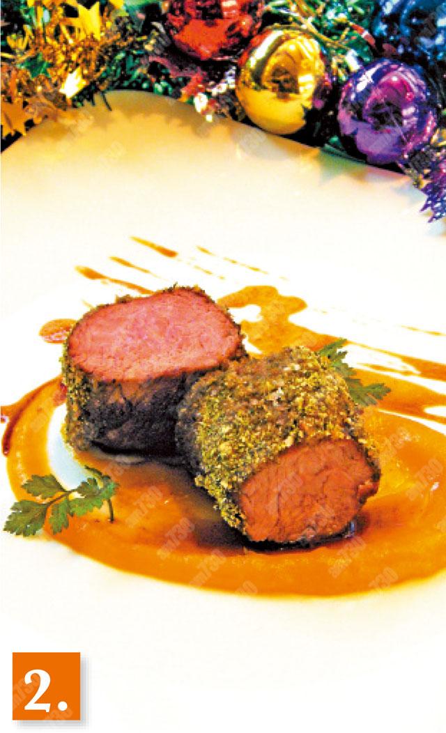 2. 羊里脊配杏脯醬,外焦內嫩,肉汁輕流。