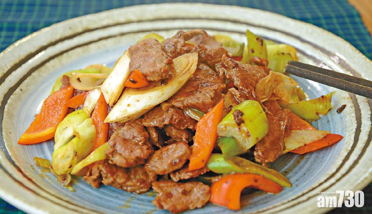 5.燒熱易潔鑊,下油,放入駝鳥肉略炒後,加入黃酒和糖炒香,把京葱和紅甜椒放入後,炒至京葱略軟身,上碟即成。