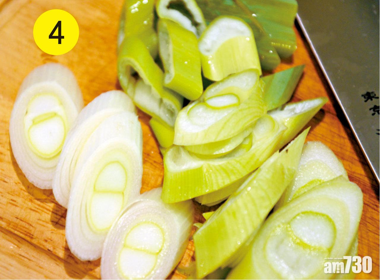 4. 京蔥洗淨切片。