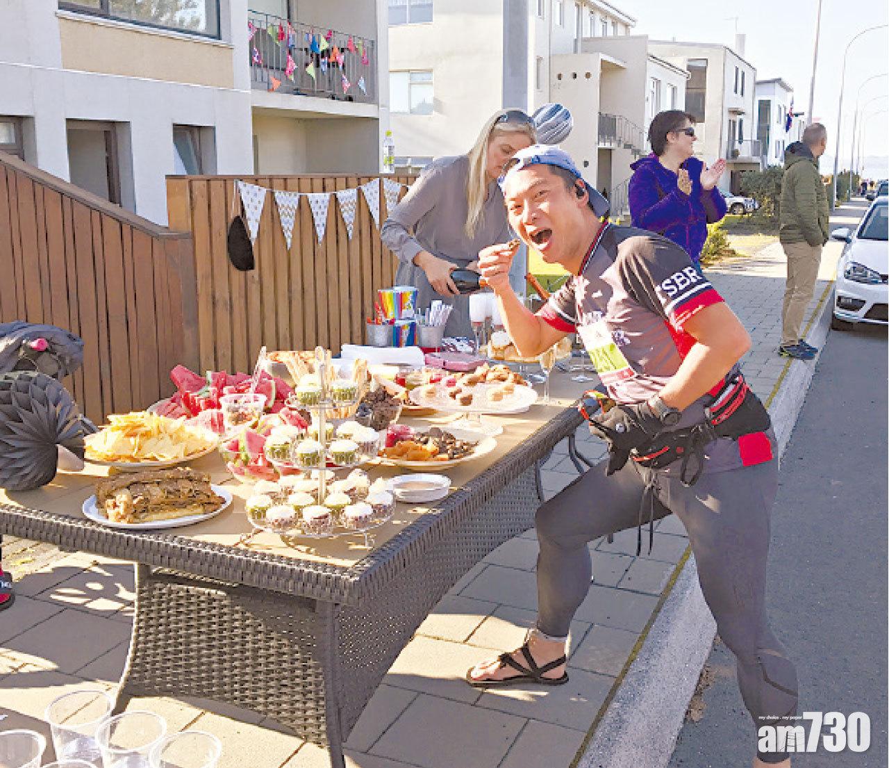 近幾年我到海外跑馬不再追求時間,更關心的反而是賽道上的見聞。這次也當然不會例外,首先吸引我的當然冰島美女。除此之外,賽道上還充滿冰島大媽,空中小姐,啤酒女郎、兔女郎等等的歡呼聲。男子組方面,有肌肉男、民間Band友、粉紅色Tuxedo中佬,眾男也不讓冰島女士專美。 民間支援站方面,有香檳、生果、芝士、蛋糕等各種食品。豐富和精緻程度實在是小編所跑過的歐洲馬拉松之中少見。一面跑,一面吃喝玩樂,我「幾經辛苦」才離開了這十多公里的賽道。 賽事最後廿公里主要是綠楊郊區,有踩單車的人,有推嬰兒車的人,也有手牽手的小情侶。這段路沒有開始的熱情氣氛,但卻多了一點溫馨和自然的風光。