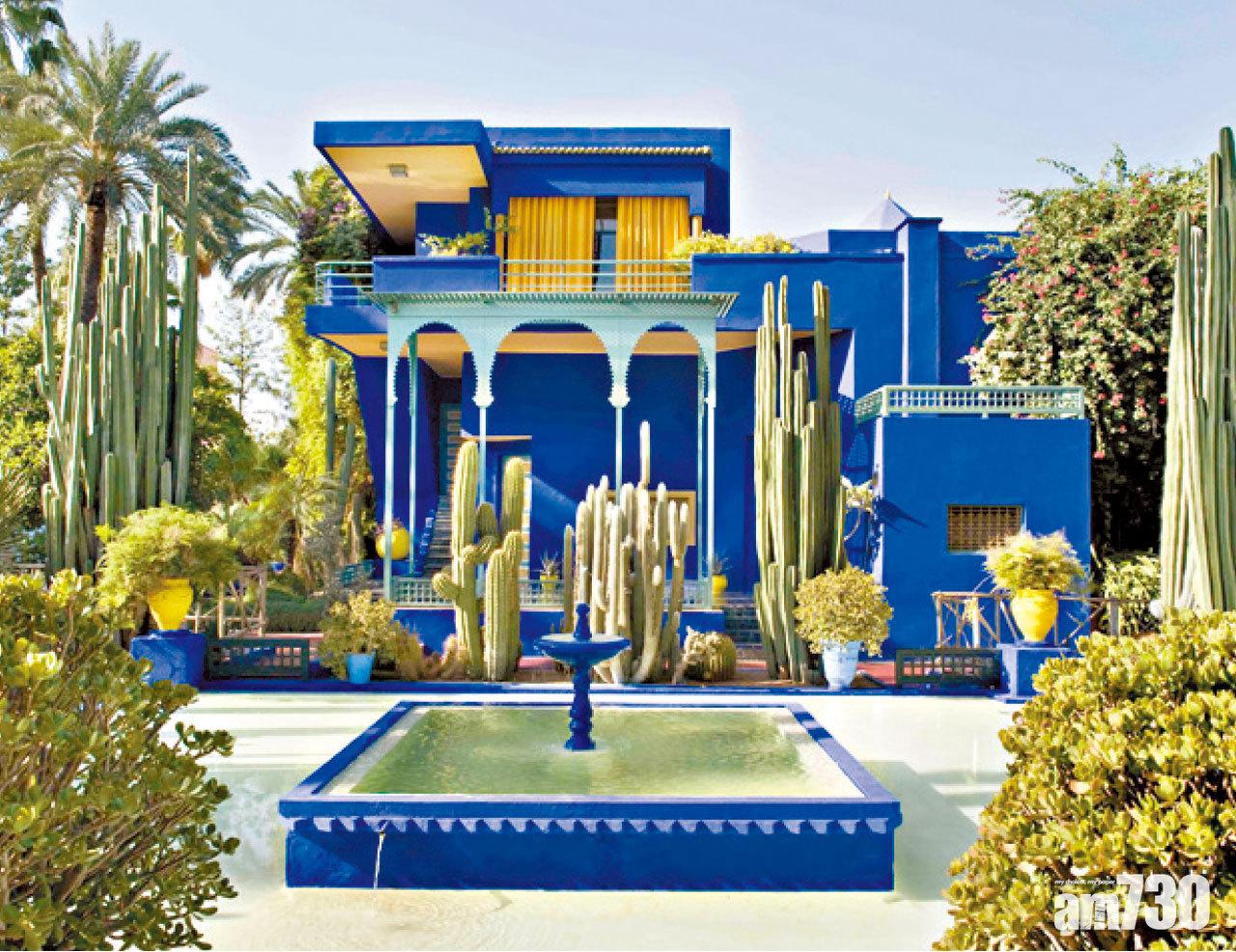 在馬拉喀什,我們將會參觀一座非常美麗、佔地六畝的私人花園-聖羅蘭花園,原名馬若雷勒花園(Jardin Majorelle)。這座花園別墅於十九世紀末由法籍畫家Jacques Majorelle始建,庭園種滿了仙人掌及熱帶植物,亦有不少他旅行時搜羅的奇花異卉。裝飾藝術風格配上摩洛哥設計,以寶藍色為主調,點綴了鮮黃、淡綠和白色的雕刻,配搭創新奪目。屋子大量採用的獨特藍色,是由他創造,稱為Majorelle Blue,為世界帶來經典色彩。