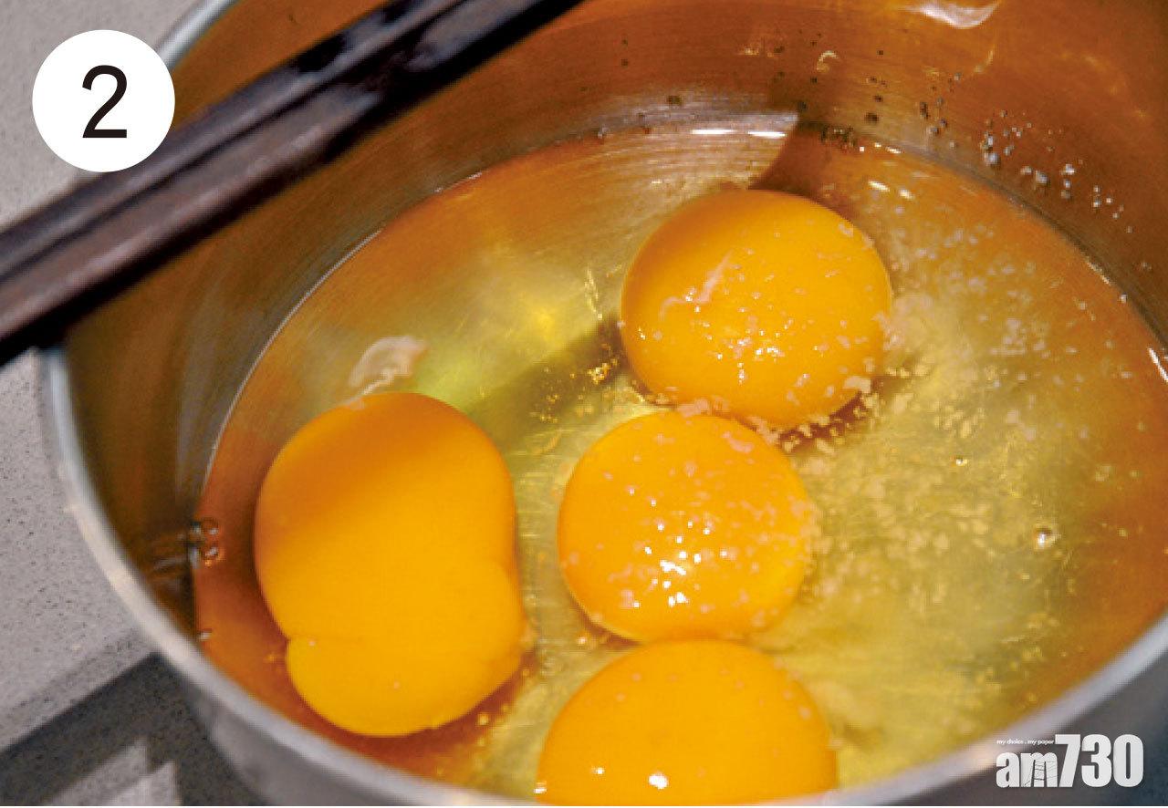 1-2. 預熱焗爐180度。將雞蛋拌勻成蛋液。