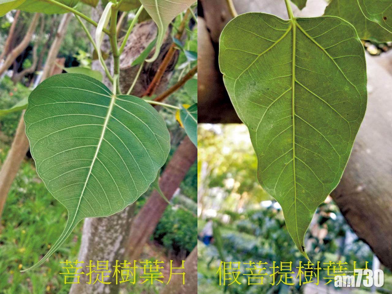 不得不提的是,在植物界裡有另一種樹木名為假菩提樹,顧名思義它與菩提樹的外觀十分相似,要辨真假的話,最簡單的方法就是看看它們葉片的滴水尖。雖然兩者的葉子均有尖長的尾巴,但菩提樹葉子的尾巴較長,可達全葉長度的三分之一至一半,而假菩提樹葉子的尾巴只佔葉片長度約十分之一。想學習佛祖親身在菩提樹下悟道,又或想考考自己的眼光,嘗試分辨真假菩提樹的話,大家不妨到同時種植了這兩種樹木的維多利亞公園走一趟。