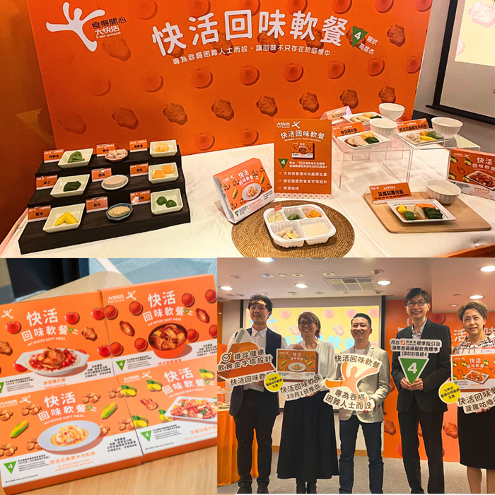 大快活集團將於10月推出軟餐,並提供WhatsApp預訂送貨,包括咖喱雞飯、焗豬扒飯、忌廉粟米肉粒飯及菠蘿咕嚕肉飯。筆者有幸嘗鮮,佩服產品還原度高,餐盒包裝亦印有不同語言翻譯,方便外傭照顧者閱讀產品指引。購買後只需簡單加熱,吞嚥困難市民便可安在家中享受無味精、原汁原味食材。