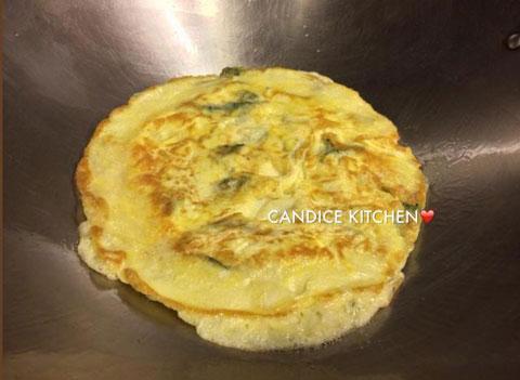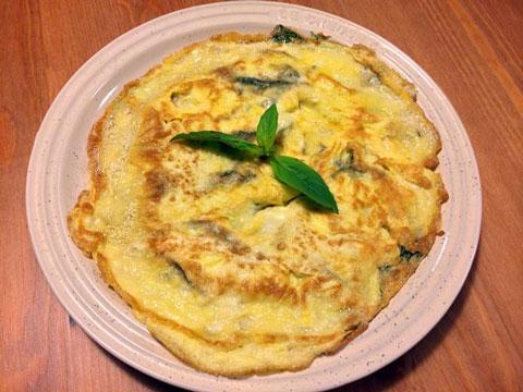 這個菜式,超級容易做,只需要兩種材料:九層塔及雞蛋,不用5分鐘也做得好,下班回家也可以做,出來的口感很特別(我還是第一次吃啊!)蛋煎得厚厚的,像吃薄餅或蛋批,想不到,簡單的配撘,也有喜出望外的味道。