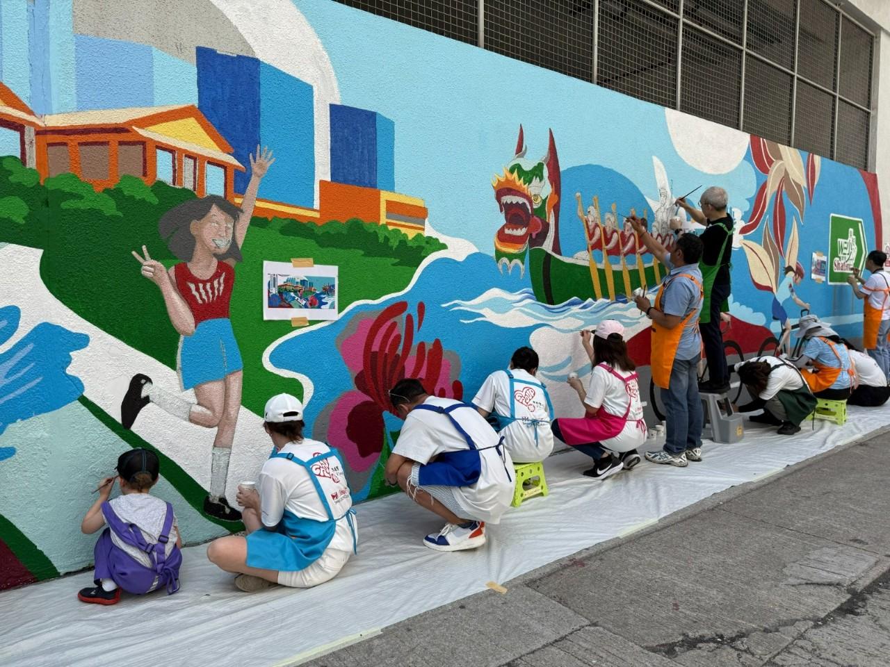 筆者一位居住沙田的同事分享了區內的一幅美景: 一幢147米高的裝瓶廠房外牆的巨型壁畫,生動地展示了沙田的生活百態,如單車徑、龍舟比賽及城門河畔,以及屹立區內超過三分一個世紀的裝瓶廠。同事每天乘車往來家和公司途中,都會在車窗外看見這廠房,壁畫上畫出了沙田的特色,也畫出了屬於大家的「社區」。這些熟悉的景象以繽紛的色彩躍現於牆上,令他十分感動。這次壁畫創作除了公司的義工參與其中,還有來自不同社區團體和非牟利機構的朋友,以及沙田街坊,當中亦不乏一家大小。壁畫更是由一位在區內居住多年的芬蘭藝術家所設計,由題材、地點到創作團隊,可謂「沙田」味十足!