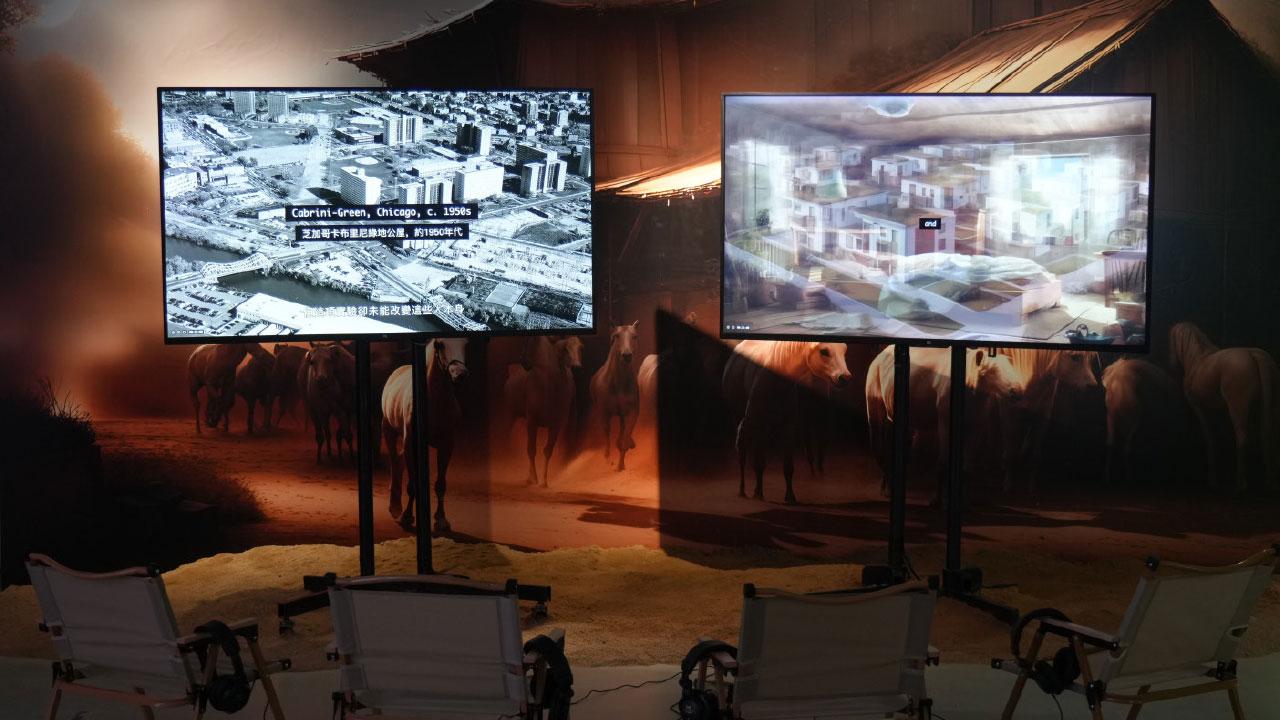 展覽的英文名稱“Promptoscape”(提視造境),是由加速(prompt)、逃逸(escape)和風景觀(scape)三個單詞簡化合成,分別隱喻三個方面:推動文化加速𧗠生的技術引擎、突破既有認知框架的出口和AI生成圖像成為數字時代的「新自然」。有趣的是,展覽將AI定位為創作對象和藝術敍事的主題。