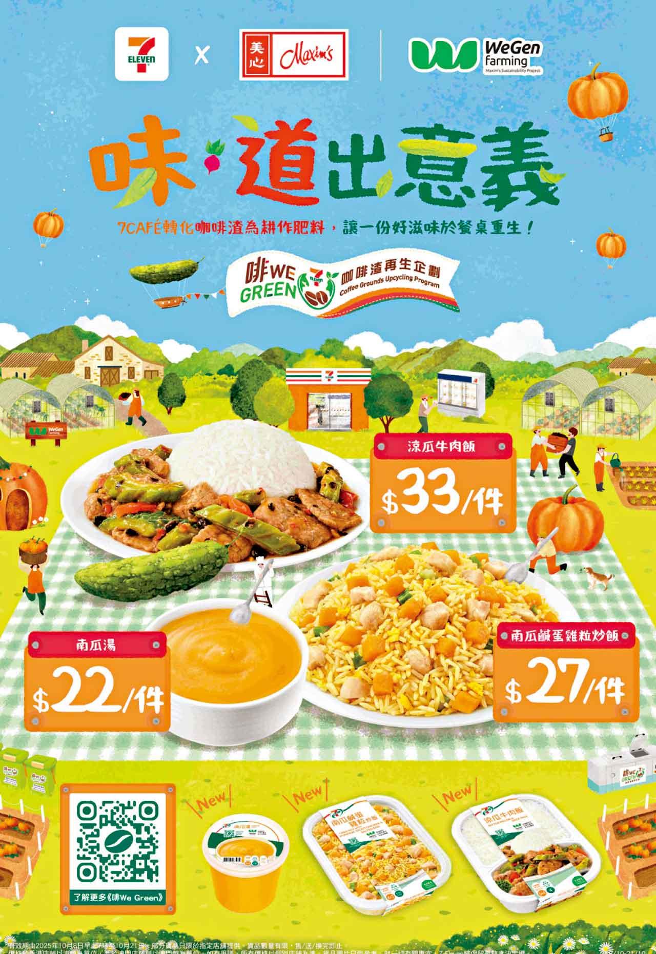 WeGen farming採用環境友善的耕作方法,成功種植出沖繩種苦瓜及奶油南瓜等優質蔬菜。這些食材隨後被製作成三款全新7-SELECT產品,包括涼瓜牛肉飯、南瓜鹹蛋雞粒炒飯及南瓜湯。