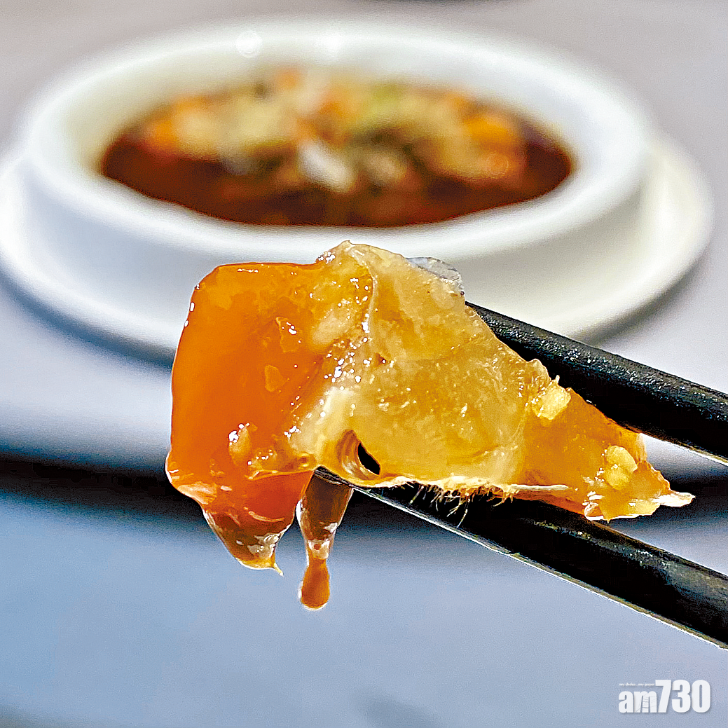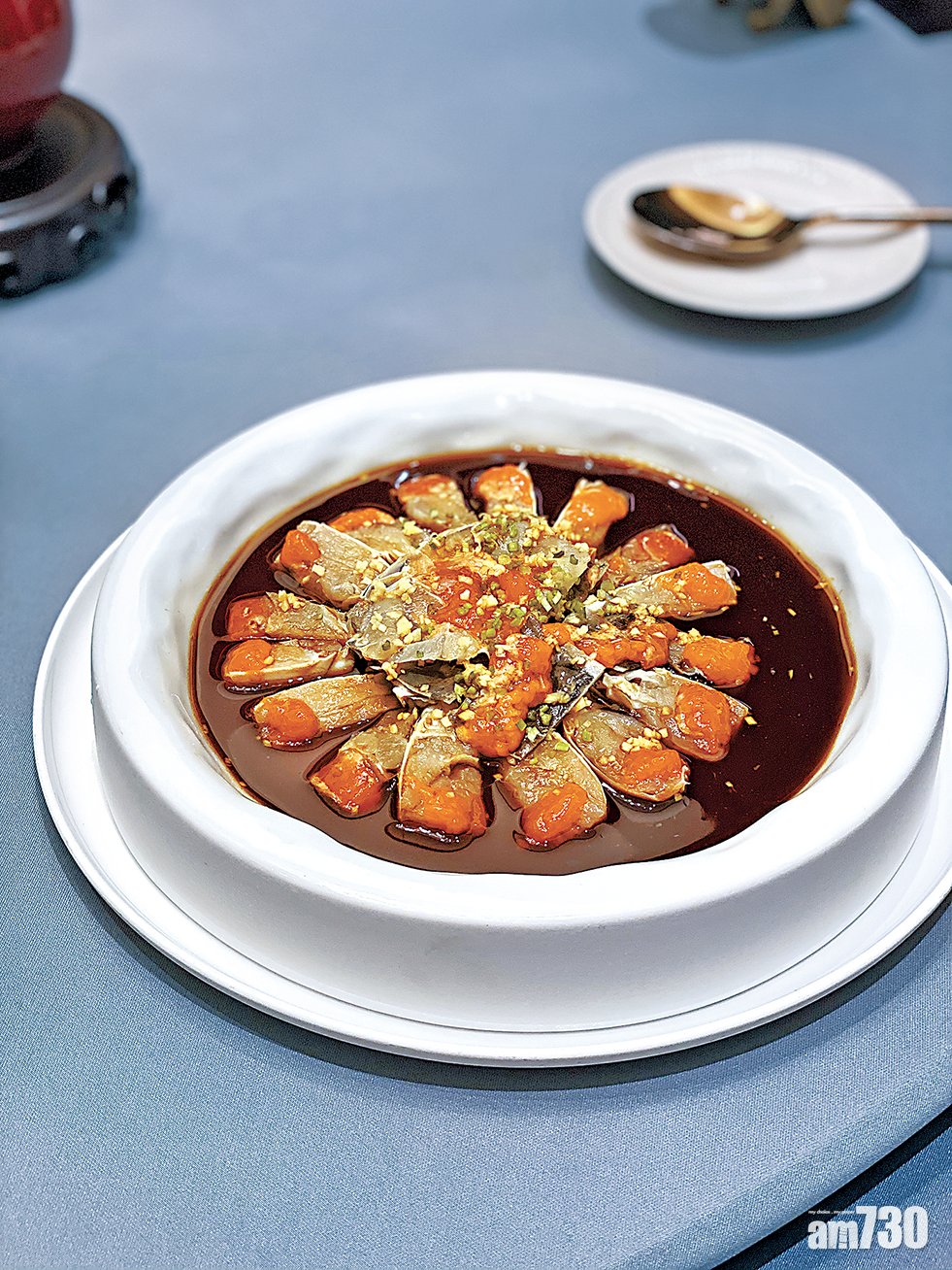 招牌十八斬─每年進入秋冬,都是盛產梭子蟹的季節,甬府很聰明,運用現代冷凍技術,捕捉後立即用零下一百九十度保存,成為無菌狀態,以供全年食用。顧名思義,「十八斬」就是將生醃梭子蟹斬開十八件,擺盤精緻,猶如鮮花一樣,醬汁力度輕輕帶出蟹肉鮮味,膏香甘甜鮮鹹合一,吃時有點震驚,意想不到竟比潮式生醃蟹猶勝一籌,而港人至愛的韓國醬油蟹……只可說螢火之光豈能與日月爭輝。